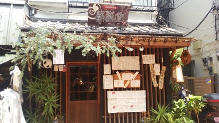 味を変えているうちに、つるつると完食結構おなかいっぱいになりました。「ごちそうさまでした。」 席は2部屋にあって、お庭の見える席と、石像の中お店から、階段を少し登って入る、堂々たる佇まいのレンガの石蔵ですがこの石蔵は、明治43年にこの地に建てられたものを移築・改装したもので、有名な建築家 隈研吾氏の建築によるものだそうですお昼を食べて終わって、もう一つ、おひる候補にしていたお店を観にいきました。「はん亭」串揚げのお店ですが・・