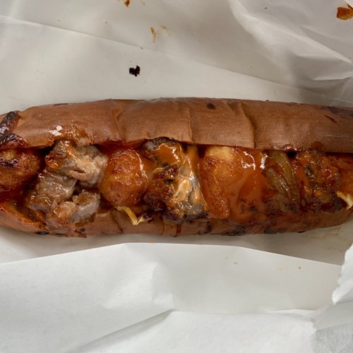 時間が出来たので、ドライブがてらに切ったがあいにくの大雨です。とても外に出れるような雨でもなく、車の中で昼食をとりました。 メニューはホットドックです...