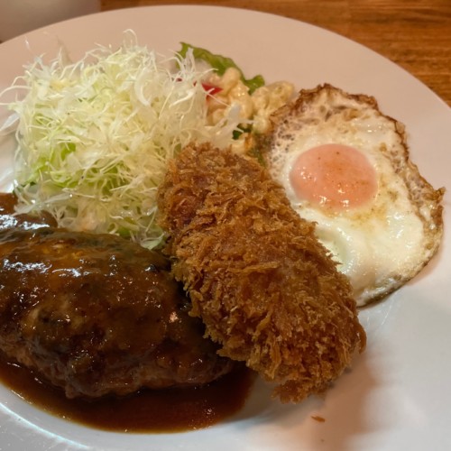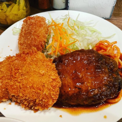 秋葉原の、洋食工房ジュンコ 注文したのはハンバーグとメンチカツに卵焼きをトッピング 注文をしてからじっくり、作って頂けるのでめちゃくちゃ美味しいです。