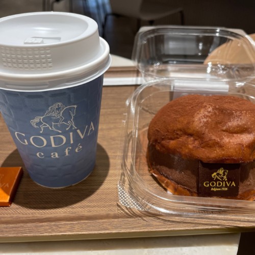 こちらのカフェでは普通のゴディバに無いメニューもあるとのこと・・夜に行ってみることに 写真は・チョコレートアールグレイ(アイス)・マリトッツォ(ダーク...