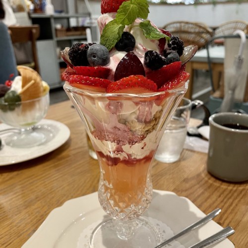 最近、パフェを食べてなく、無性に食べたくあったので数名でこちらのカフェへ 自分は「ベリーの宝石パフェ」 他の方は 「キウイフルーツとマンゴのVitam...