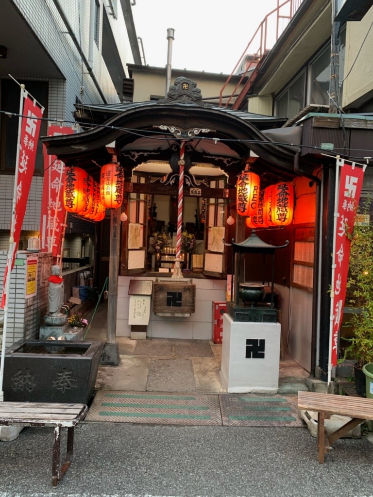 谷中銀座を歩いていくと、「延命地蔵尊」というお地蔵様が祀られています。延命地蔵尊のすぐそばには水洗地蔵尊も。願い事をしながら、その体を洗い清めることでご利益があるそうです。