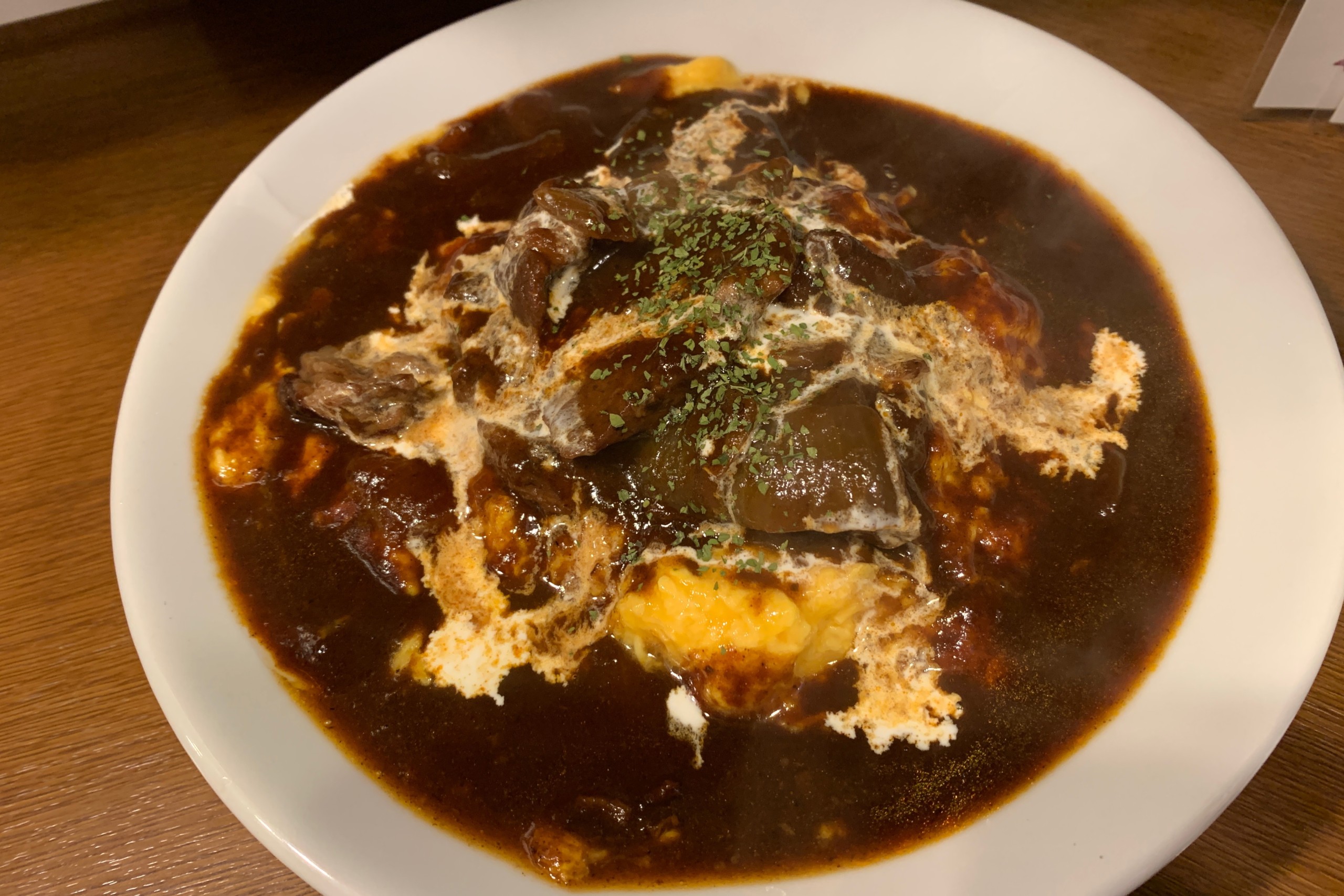 牛たん煮込みのオムライス、1300円を注文しました。