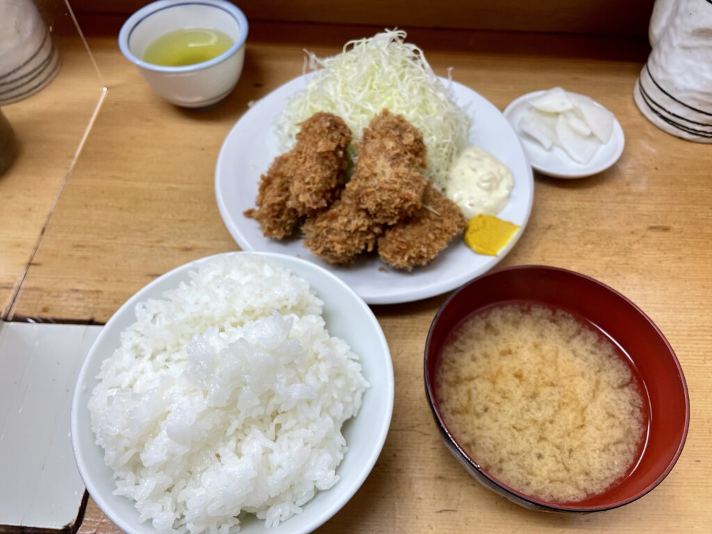 カキフライを注文して10分くらい待ったでしょうか!目に前に揚げたてカキフライがー!!