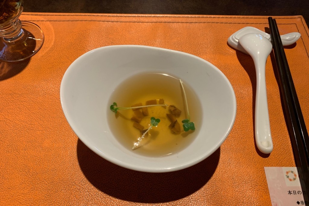 コンソメスープのような感じで椎茸のスープを出して