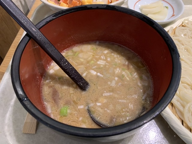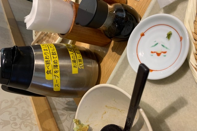 最後に近くに置いてあるポットのお湯をつけ汁に入れてスープを楽しめます