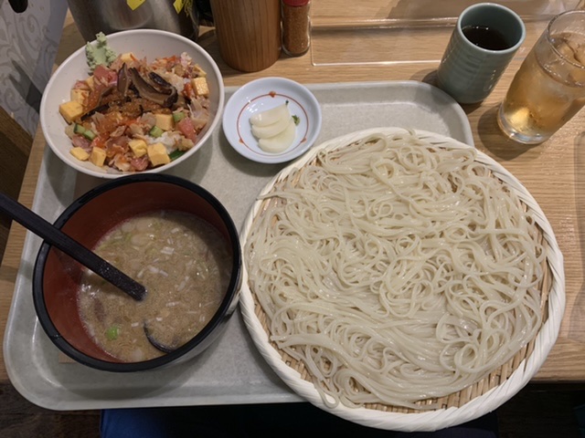 人気のつけ汁、みょうが少しごまでしょうか   、クリーミーさもあって、独特なつけ汁