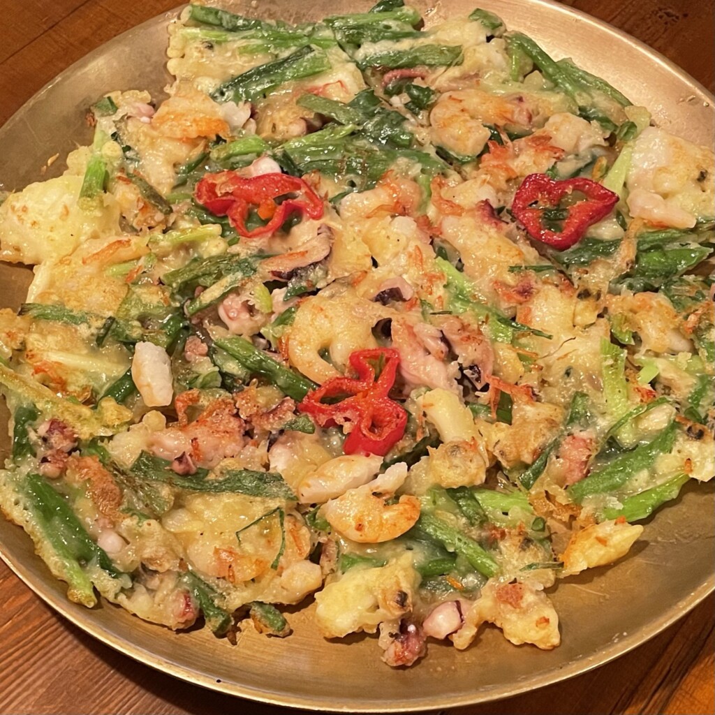 パリパリとした食感は、今まで食べたチヂミとまったく異なります