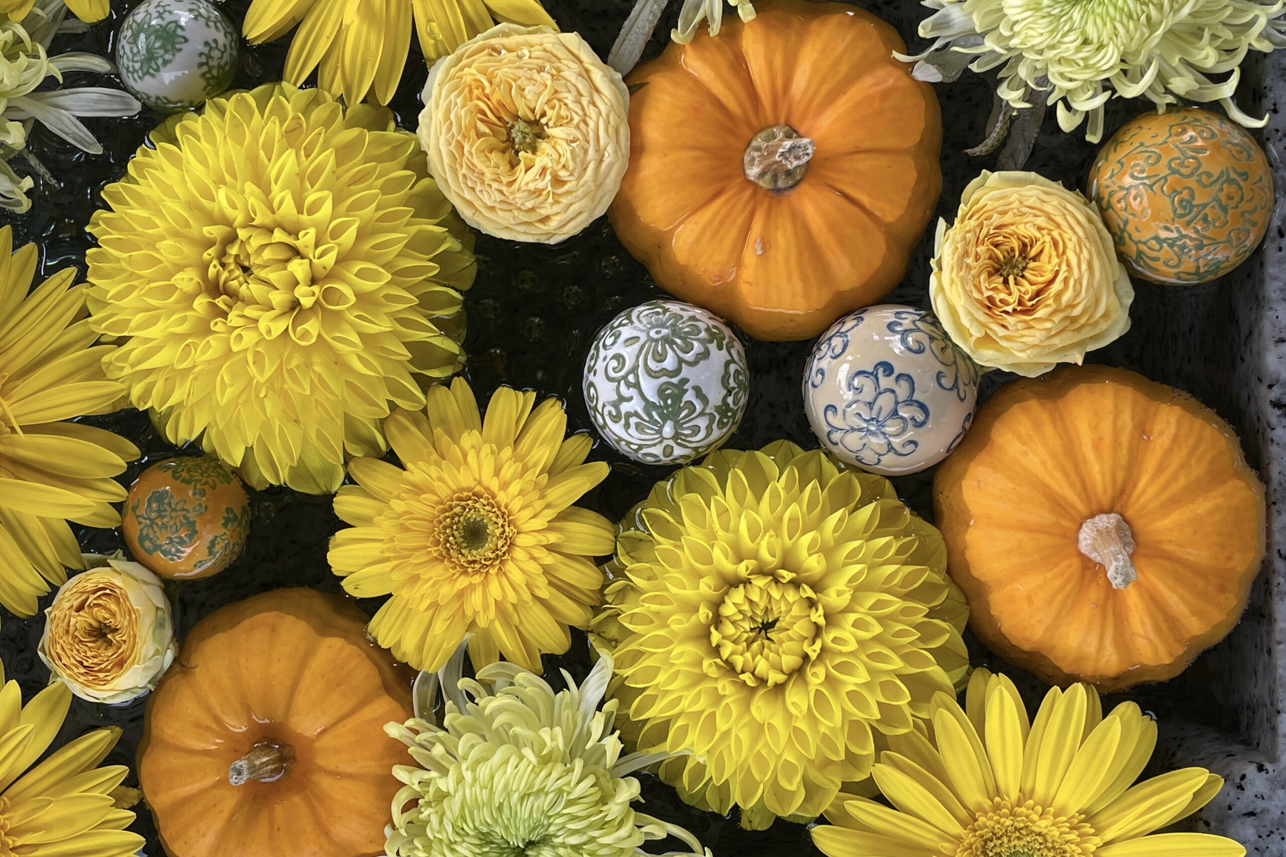 手水は竜の口からお水が出る構造になっていて、そこにも沢山の花が・・