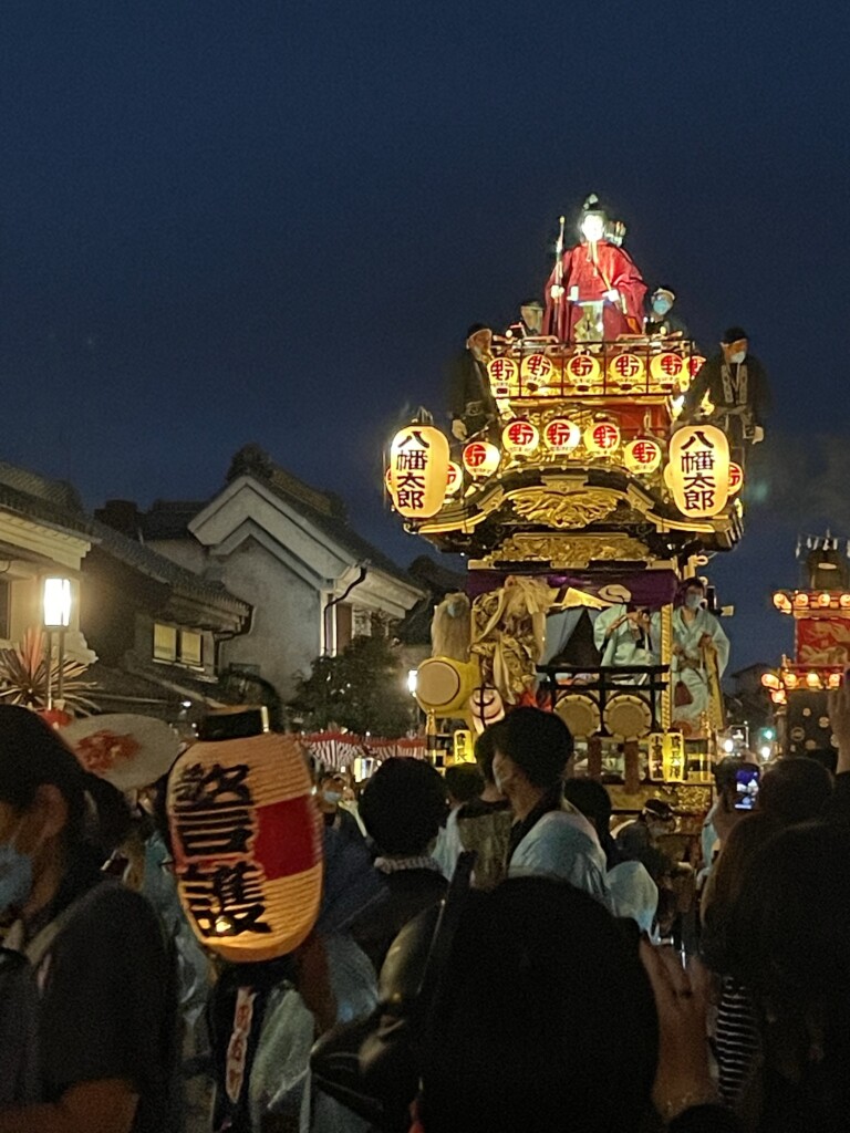 そのご川越まつりは夜も続くので、また中央通りの方にもどって山車をみたりしました。