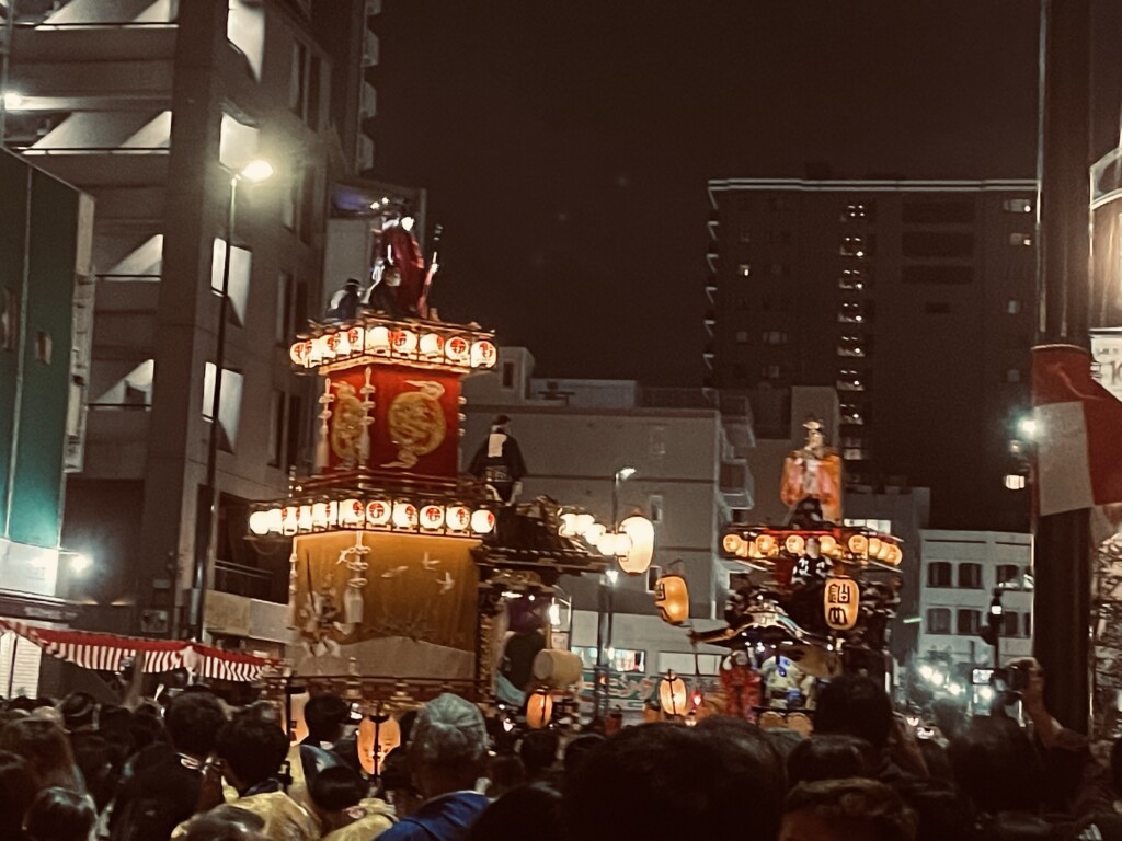 帰りにこちらに寄って、山車が出会うところを見た