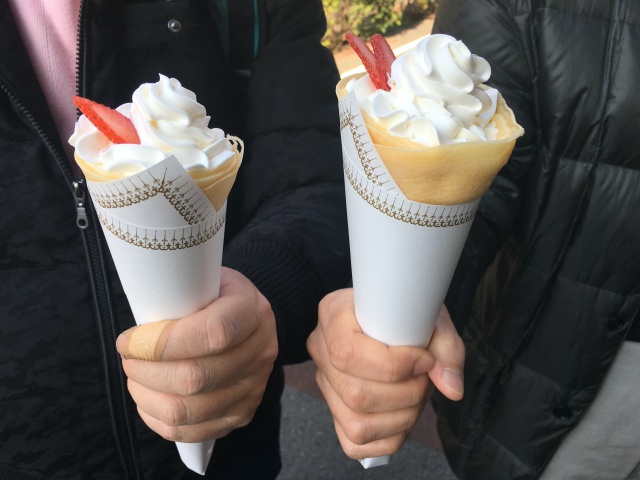 駅の方に戻って来ると。商店街の中にはクレープ屋さんがあって、メンバーの方は買って食べていました。