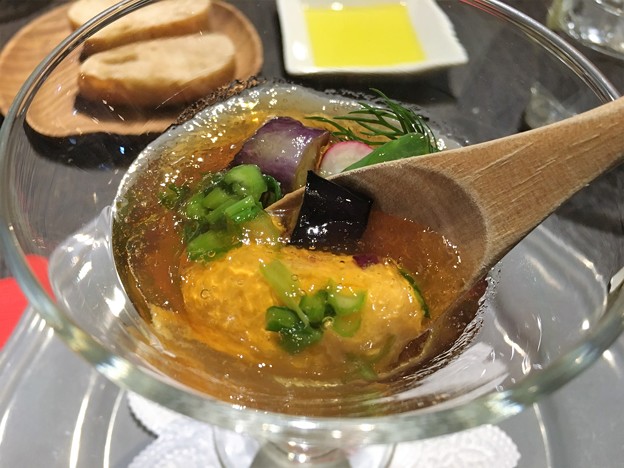 オーガニック野菜をムースとコンソメのジュレで挟んだパフェ